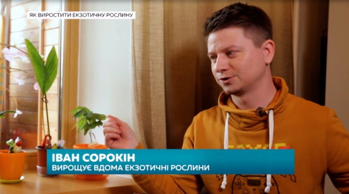 Кременчужанин Іван Сорокін «засвітився» у проєкті «Ранок з Україною» на телеканалі «Україна» завдяки тому, що вирощує прямо на підвіконні у власній квартирі екзотичні рослини.