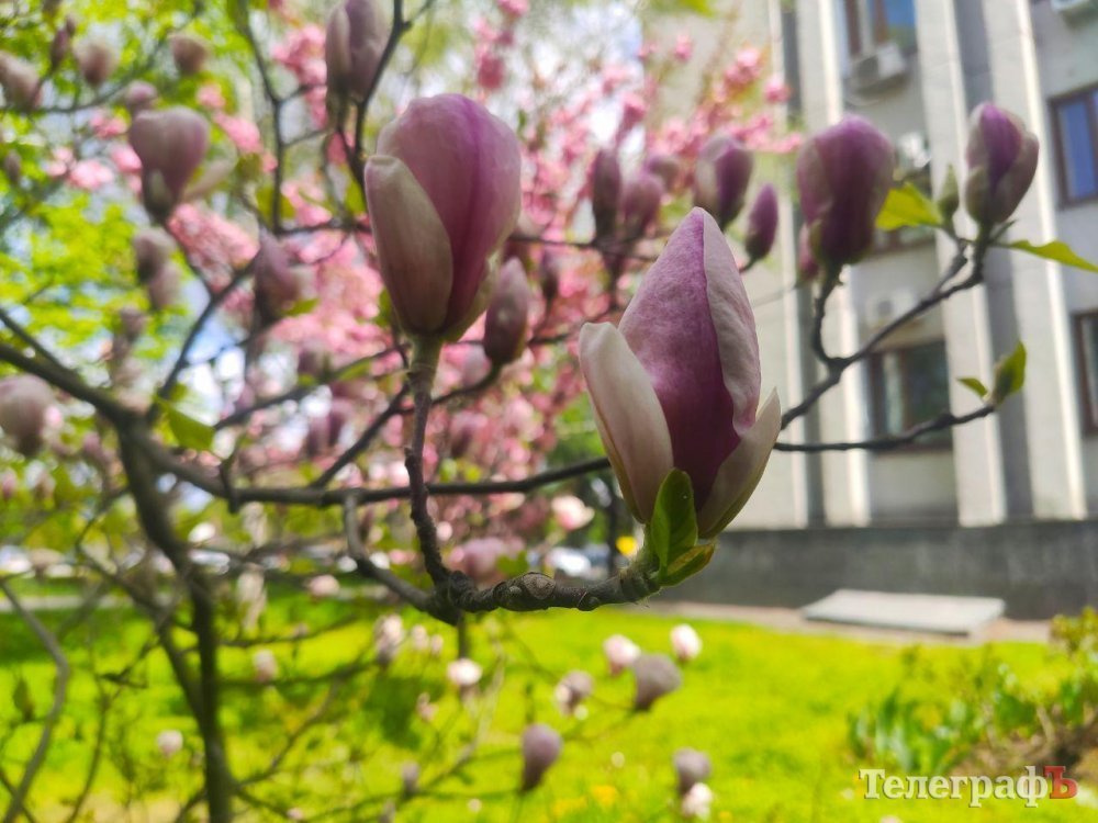 Кілька тижнів назад від морозу постраждали квіти магнолії на вул. Першотравневій біля кафе «Завітай» (напроти Кременчуцького національного університету). Біля мерії квітки «дівочої душі» також відчули холод весняних ночей.