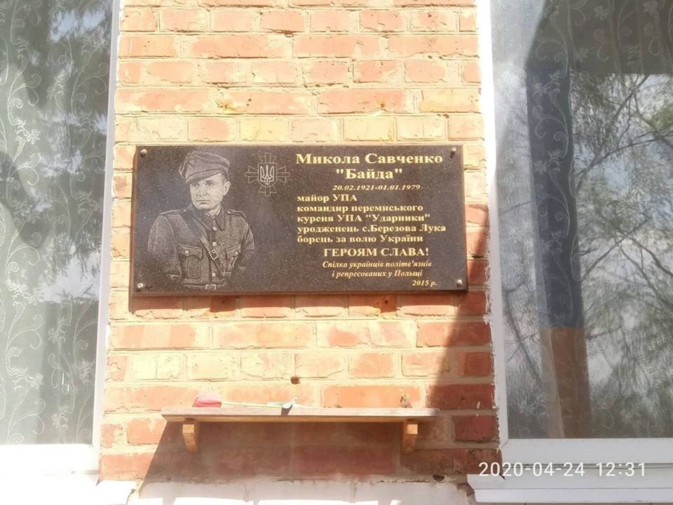 У селі Березова Лука Гадяцького району відновили зруйновану меморіальну дошку командиру сотні «Східняки» УПА, уродженцю села Миколі Савченку «Байді». Про це повідомив в.о. голови Гадяцької РДА Сергій Бондаренко. За його словами, поруч встановили відеокамеру, щоб у майбутньому убезпечитись від зазіхань вандалів. Виготовлення і встановлення дошки і відеоспостереження профінансувала Петрівсько-Роменська ОТГ. Нагадаємо, торік у грудні, проросійські вандали зруйнували меморіальну дошку, яка знаходилася на фасаді місцевої школи.