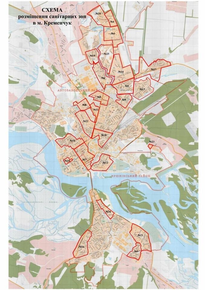 На території Кременчука вже 25 карантинних зон. Фото з нанесенням зон опублікувала пресслужба виконкому Кременчуцької міськради.
