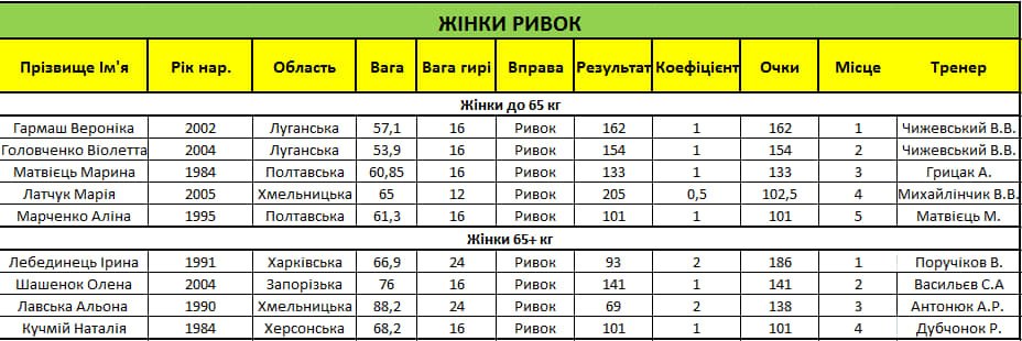 А ось Аліна Марченко гирю вагою 16 кг змогла підняти 101 раз й посіла 5 місце.