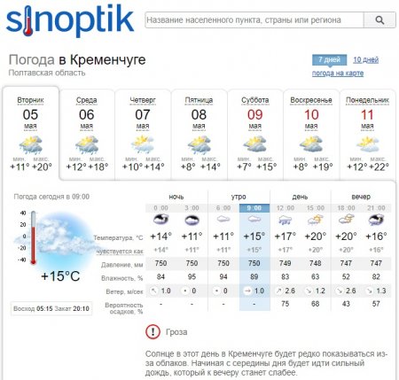 Обратите внимание, что Gismeteo обещает короткий перерыв от мокрой погоды только в субботу, 9 мая, а потом в воскресенье, 10 мая, и на следующей неделе возобновление дождей в нашем городе.