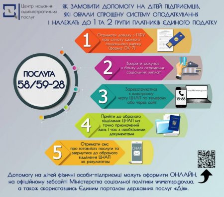 Фізичні особи-підприємці можуть оформити допомогу на дітей до 10 років, навіть не звертаючись особисто у ЦНАП: для цього слід заповнити електронну форму онлайн на офіційному вебсайті Міністерства соціальної політики в розділі е-сервіси, а також додати необхідні документи. Також можна скористатися Єдиним порталом державних послуг «Дія».