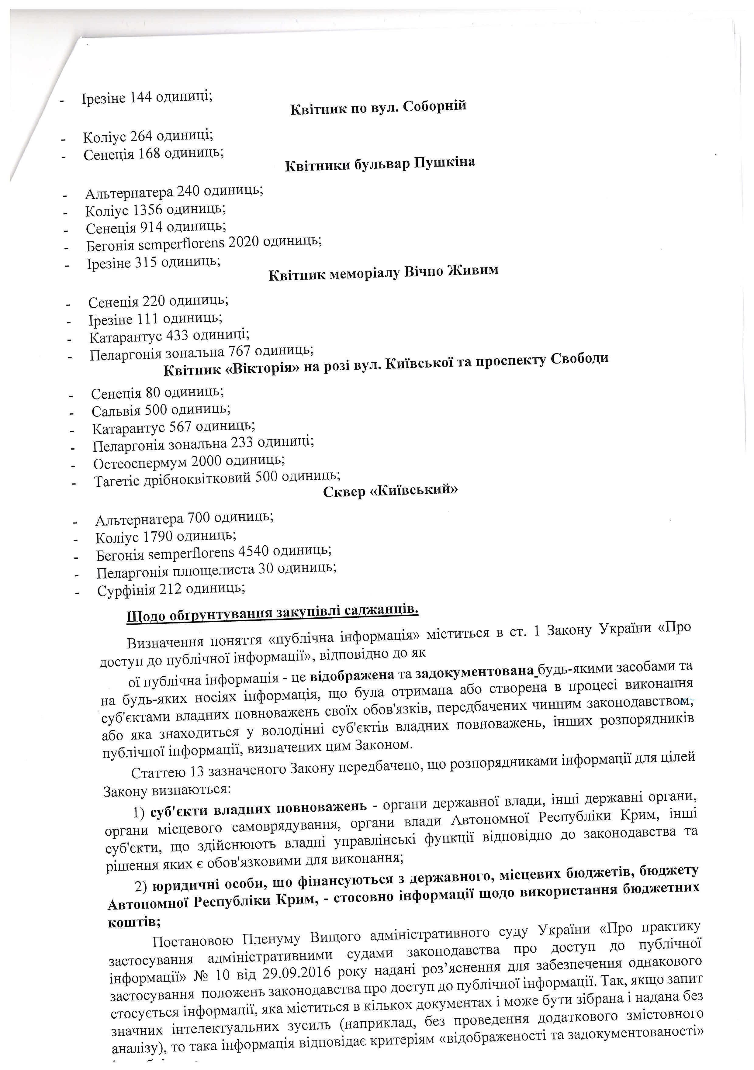 А саме: прошу надати документ про те, яка кількість саджанців (відповідно до переліків у