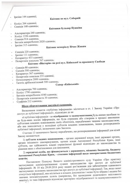 Така відповідь нас відверто подивувала: якщо необхідність закупівлі не відображена у документах (наприклад, у планах озеленення конкретних зон) виходить, тендерна пропозиція формувалася «від фонаря»?