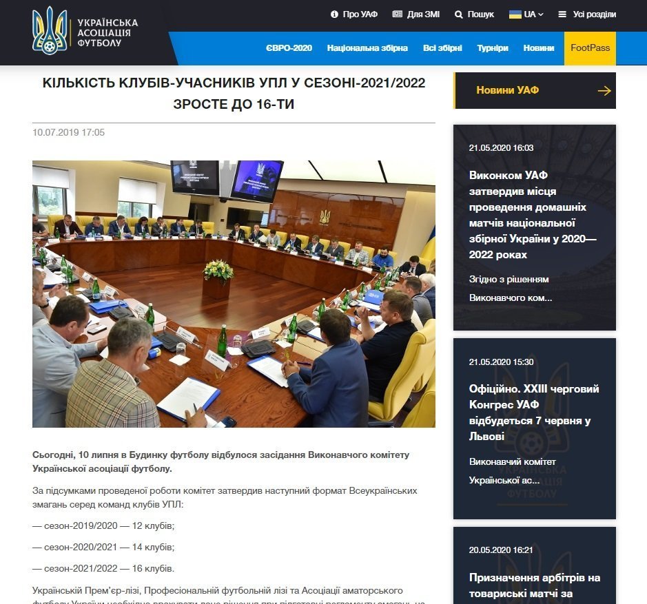 Перед стартом сезону 2019-2020 на засіданні Виконавчого комітету Української асоціації футболу затвердили розширення УПЛ. В сезоні 2020-2021 в УПЛ буде 14 команд, з перспективою в сезоні 2021-2022 збільшити кількість команд до 16.