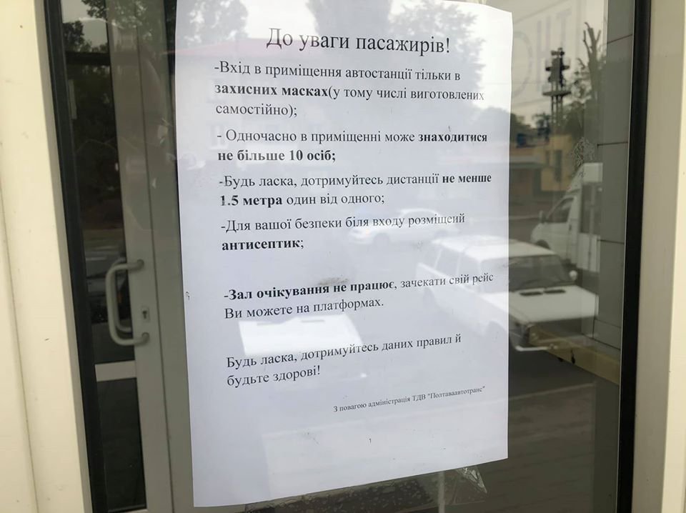 Посадка пасажирів в автобуси здійснюється лише за наявності захисної маски. В одному транспортному засобі перевозитимуть пасажирів за кількістю місць для сидіння. Також на території автовокзалу діє масковий режим із дотриманням соціальної дистанції між відвідувачами.