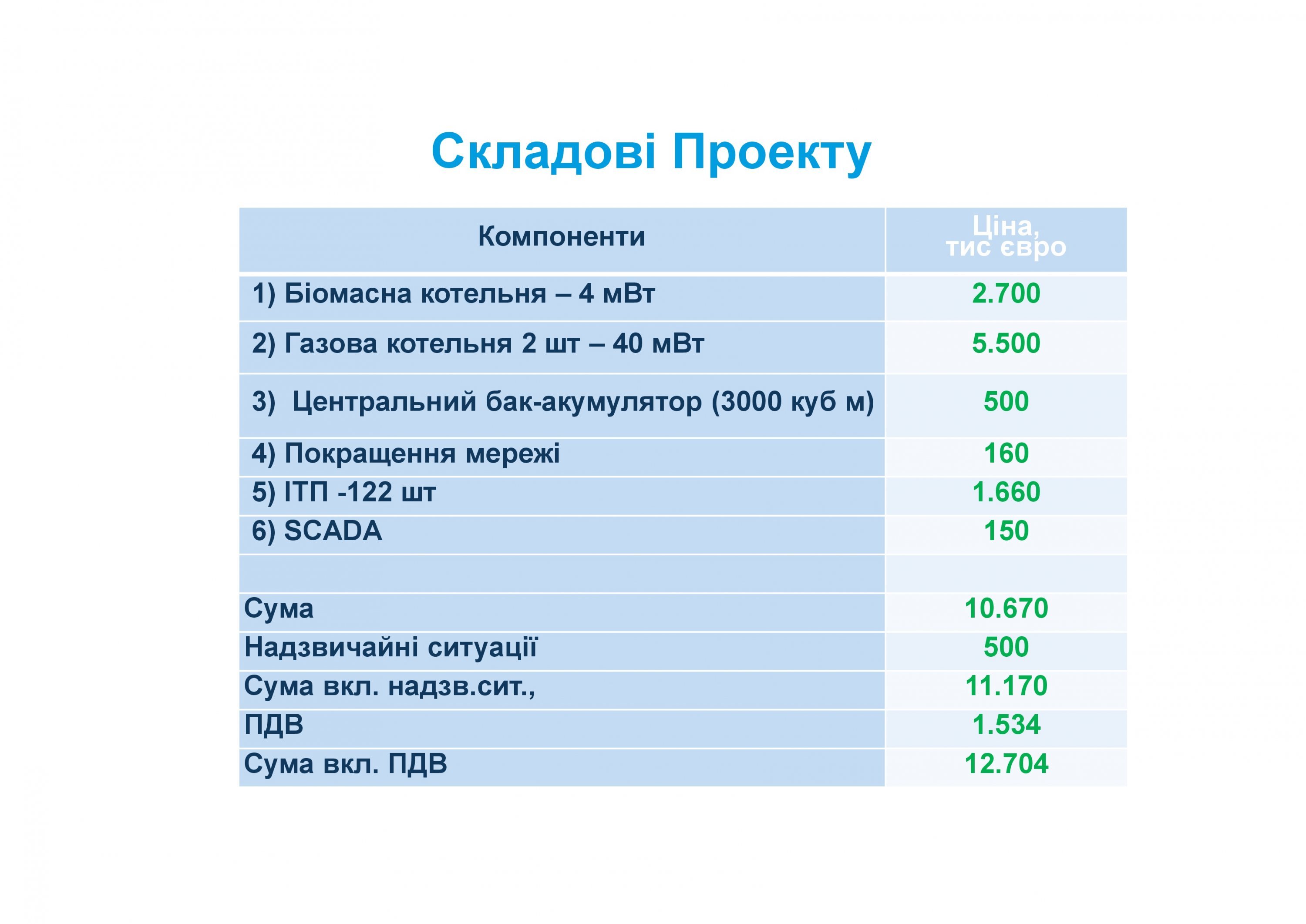 12,7 млн євро — загальний інвестиційний бюджет проєкту, із них: