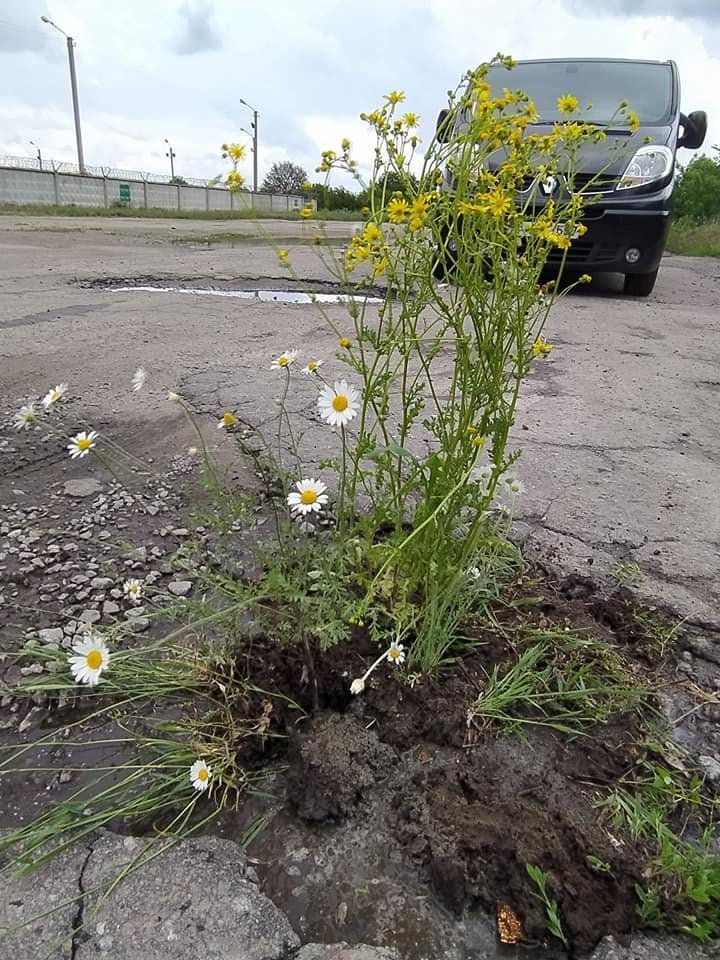 Вздовж Крюківського вагонного заводу з’явилося дорожнє ноу-хау – ями засадили багаторічними жовтими квітами. Світлини з лайфхаком виклала кременчужанка Марина Орлова.