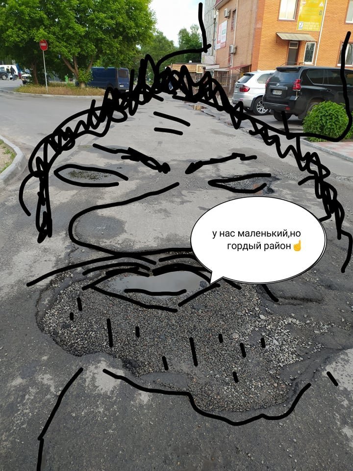 Кременчужани не зупиняються й далі продовжують боротися з ямами. Так в районі магазину АТБ на Раківці з’явився чоловік з бородою.