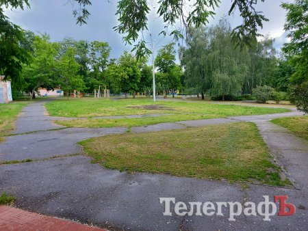 А так этот участок парка выглядит сейчас, видим «островки» травы, которые перемежевываются с асфальтными дорожками