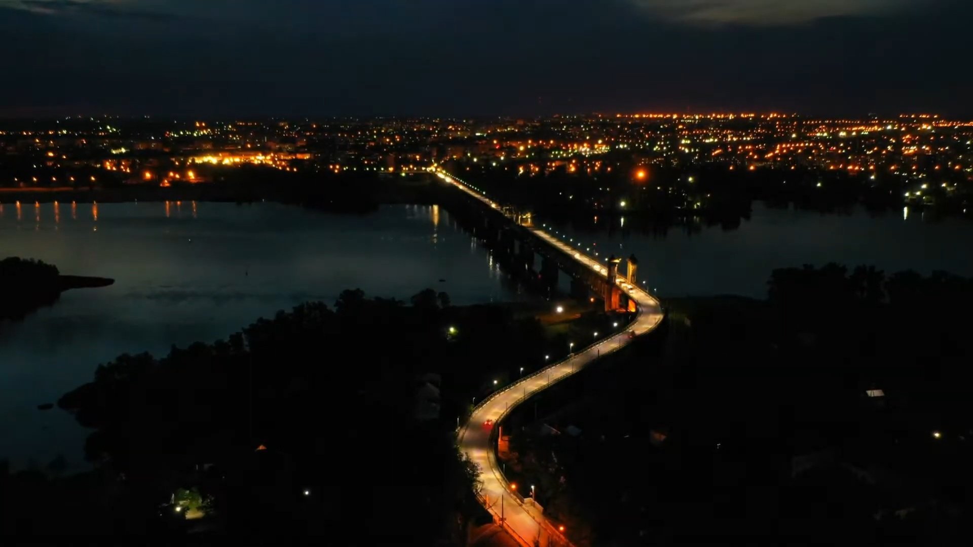 Предлагаем посмотреть видео от творческой студии «Полёт», на котором запечатлён ночной Крюковский мост з высоты птичьего полета.