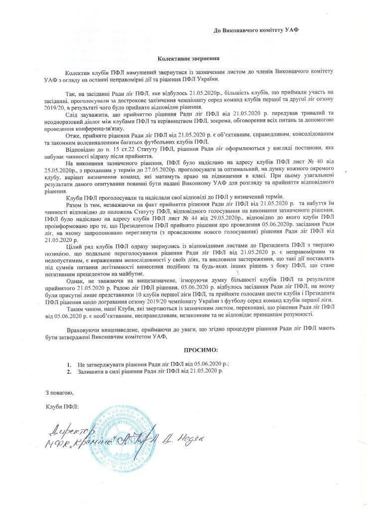 Перед засіданням УАФ 9 клубів Першої ліги, серед яких «Кремінь» та «Гірник-Спорт», направили лист до керівництва українського футболу, акцентуючи увагу на нелегітимності другого засідання ПФЛ, через відсутність повної квоти клубів-учасників. Й прохали залишити рішення від 21 травня, а саме – зупинити чемпіонат у звичному форматі й обрати, у якому саме форматі дограти командам, які претендують на підвищення в класі.