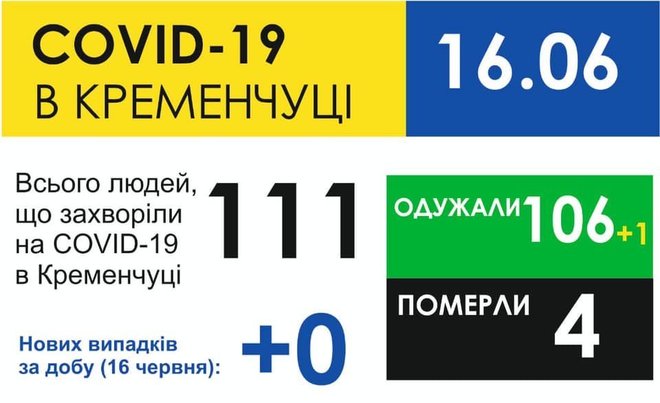 Всім пацієнтам з пневмоніями та ГРВІ з підозрою на COVID-19 проводять ПЛР-тестування зразків біологічного матеріалу. З 10 червня нових випадків коронавірусноі хвороби в Кременчуці не реєструвалося.