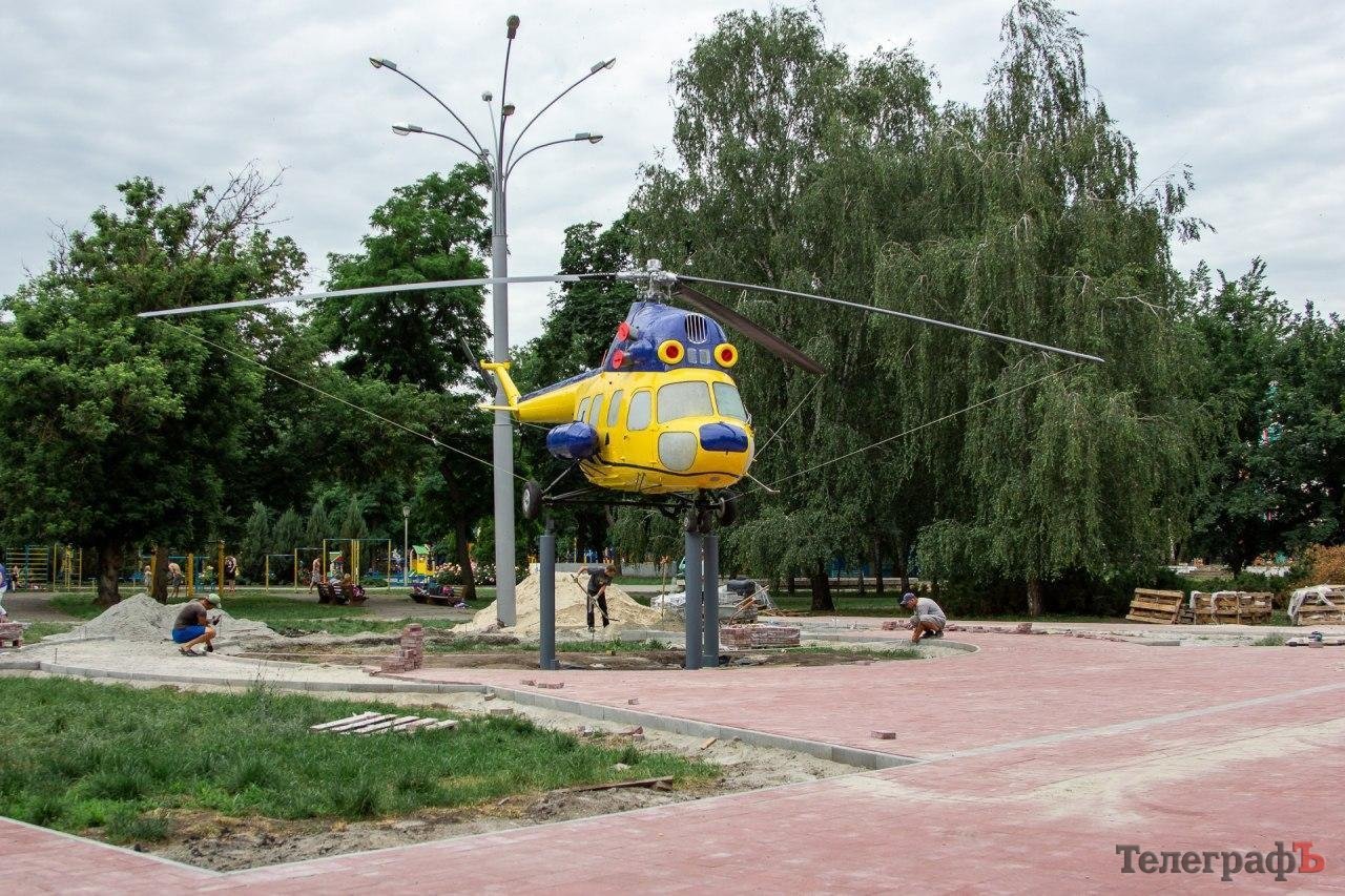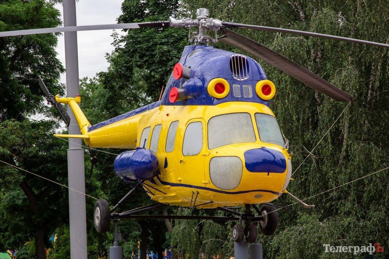 Сьогодні зранку, 19 червня, у Придніпровському парку встановили вертоліт МІ-2. Гвинтокрил жовто-блакитного кольору встановлений неподалік від льотного коледжу.