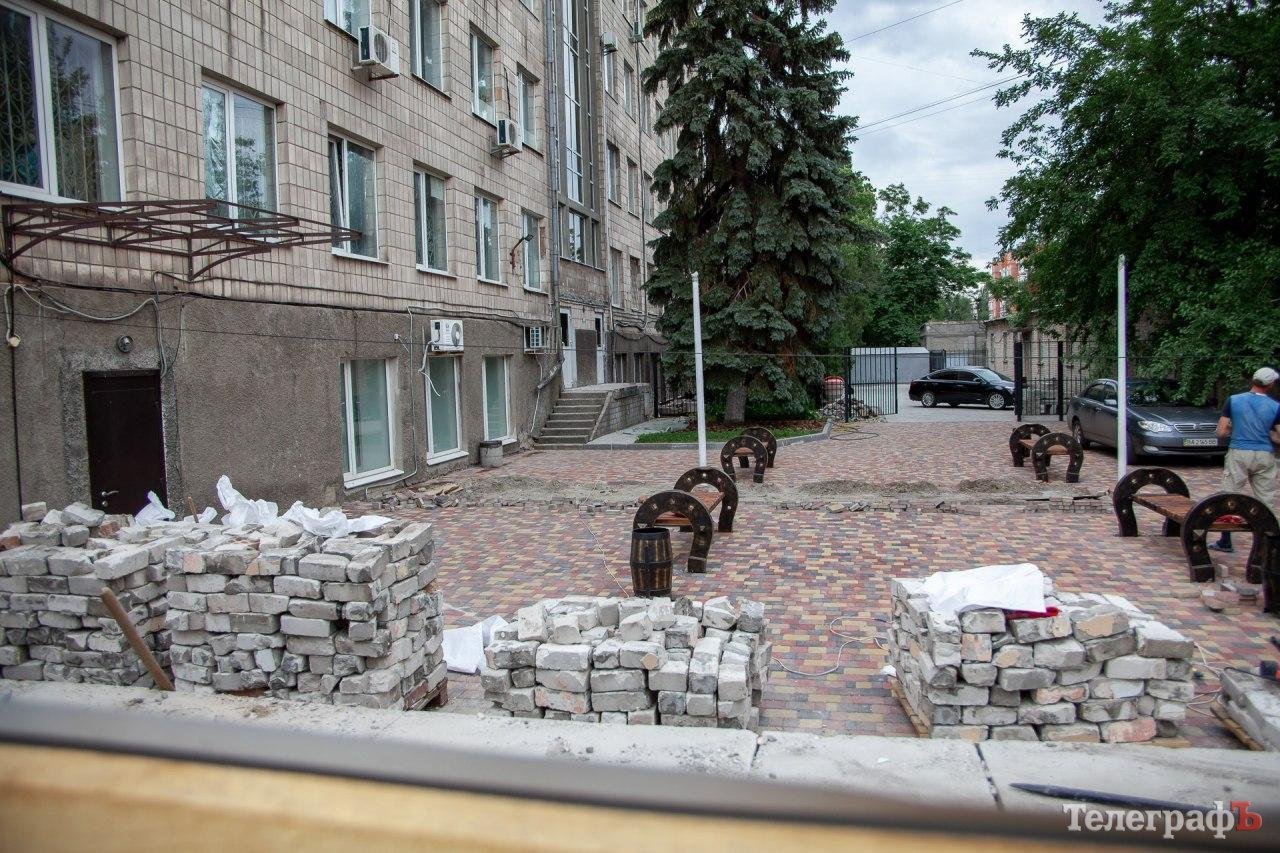 Керівниця управління архітектури та містобудування Олександра Волощенко доповіла, що, відповідно до паспорту об’єкта, який з’явився на паркані, ведеться «капітальний ремонт благоустрою внутрішнього двору Кременчуцької районної ради (заміна, встановлення нових, малих архітектурних форм: воріт, навісу, лавок, урн)». А також показала фото. Інформація про кафе офіційно не підтвердилася.