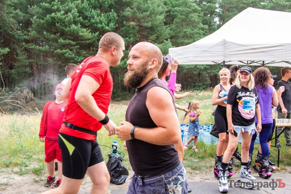 – На змагання зареєструвалися 96 осіб, але багато охочих приєдналися безпосередньо перед самими змаганнями. – розповів Віталій. – Змагання вирішили провести зранку, бо вже о 8 годині температура підіймалася до 26 градусів. Важко бігти в таку погоду. Сьогодні погода нас порадувала й небо було затягнуте хмарами. На випадок спеки ми врахували оприскувачі для учасників, а це понад 200 літрів води, щоб обприскувати спортсменів (деякі бігуни долали пів марафон – понад 20 км – ред.)