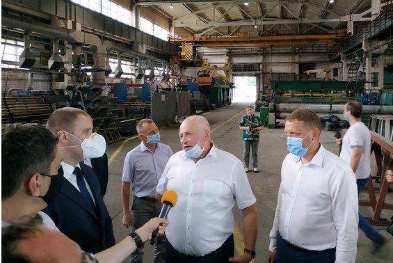 Губарнатор (второй слева) на заводе «Кредмаш»
