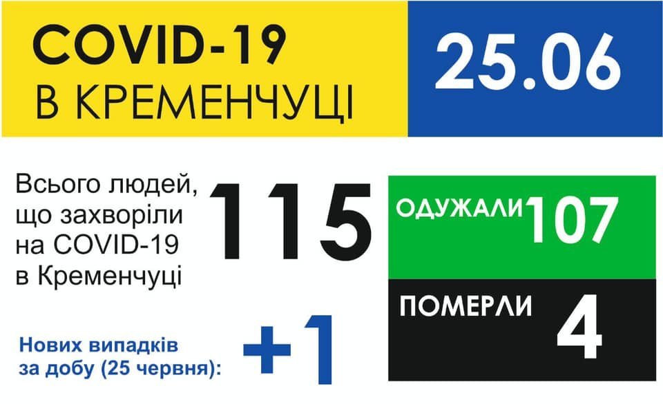 25 червня у Кременчуці зафіксували новий випадок коронавірусної інфекції – захворів чоловік 32 років. Про це повідомив мер нашого міста Віталій Малецький.