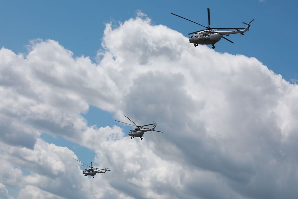 Апогеєм авіашоу стала поява трьох великих вертольотів Мі8-МТВ від ТОВ вертольотно-тренувального цетру «Українські вертольоти». Три білі красені пролетіли над Дніпром, після чого двоє відокремилися та зникли за горизонтом, а один продовжив перфоманс.