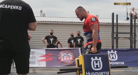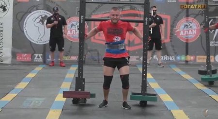 3. Прогулянка фермера (пронести два чемодана 100 або 120 кг на 40 м). Оскільки у спортсмена була незначна травма ноги він обрав 100 м