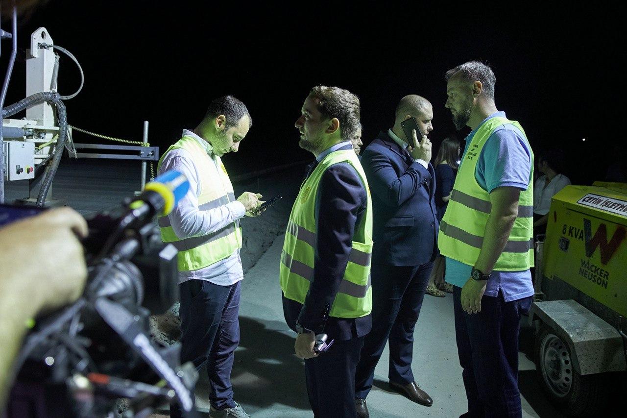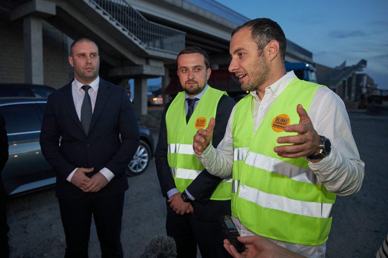 Також оглянули ремонт шляхопроводу через залізницю біля с. Бутенки, де підрядник будує армоґрунтову підпірну стінку та влаштовує основи, та будівництво об’їзду біля с. Красне, де влаштовують фінішний шар бетону, та оновлення ділянки на межі з Дніпропетровщиною. На цьому відрізку будівельники відсипають земляне полотно, влаштовують пісний та важкий бетон.