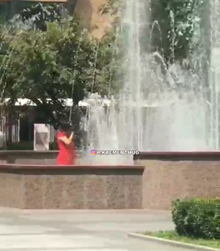 Сьогодні, 19 липня, у соцмережі h.kremenchug опублікували відео зі скверу Бабаєва. На відео видно, як жінка у червоній сукні та капелюсі танцює біля фонтану, оголюючи інтимні частини тіла. Згодом вона продовжила оголюватися вже у фонтані.