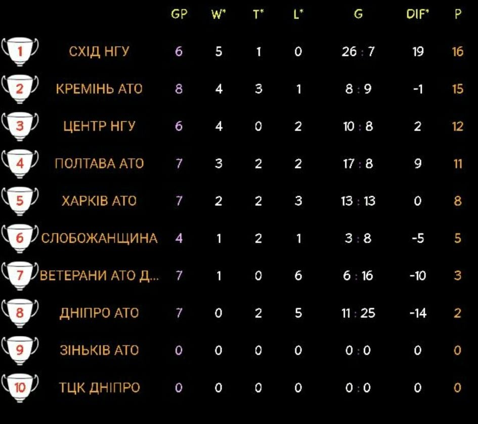 Таким чином кременчужани посідають другу сходинку в турнірній таблиці.