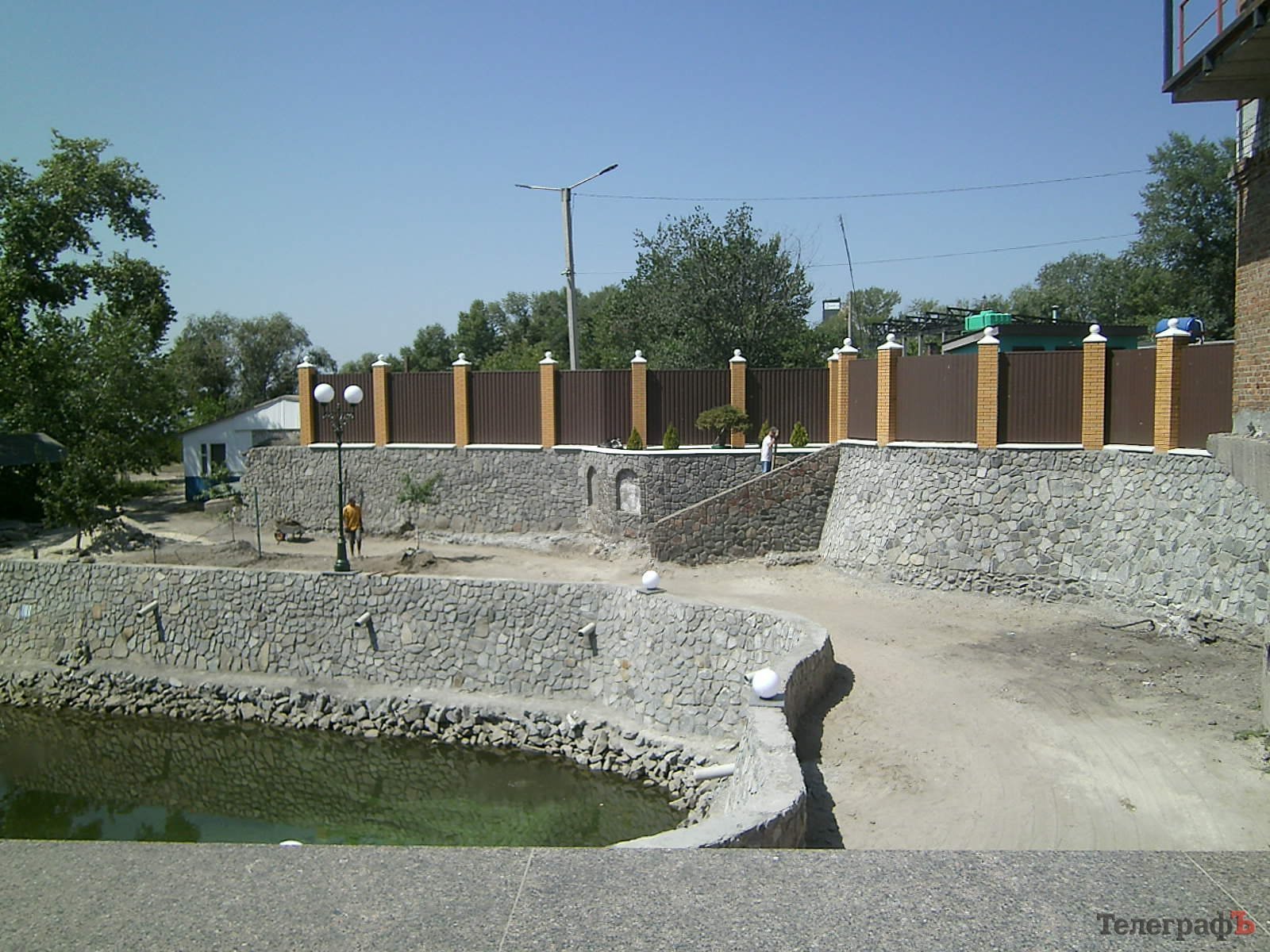 Хозяин Галата приехал и сперва велел всем идти отсюда, потому что это его частная собственность. Потом успокоился и согласился провести нам экскурсию по территории. Мы увидели длиннющий добротный каменный забор, построенный Галатой по границам участка, клумбы, дом – точнее, мы приняли это здание за дом, но, как оказалось, это и есть водозаборная станция, фото её вы уже видели, так что поймете, почему мы ошиблись.