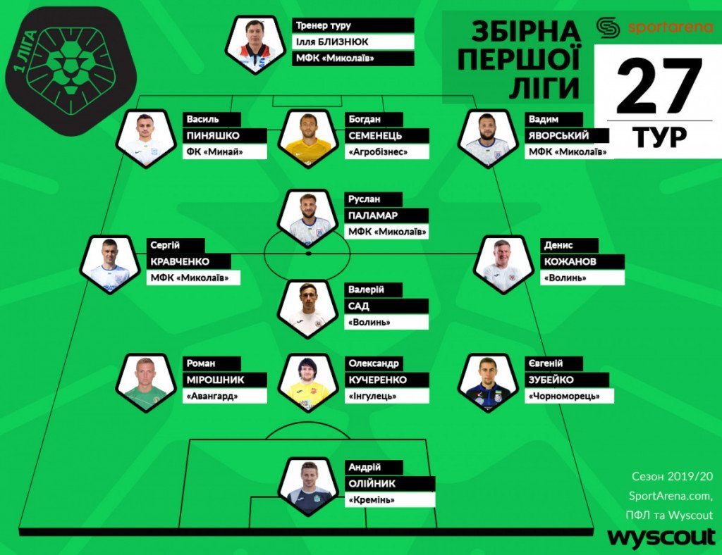 Sport Arena в співпраці зі знаменитою італійською компанією Wyscout називає символічну збірну 27-го туру Першої ліги сезону 2019/20.