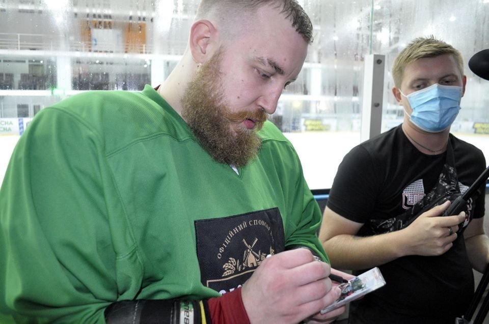 Захисник «Кременчука» Всеволод Толстушко не лише відповів на питання журналістів, а й презентував магніти з автографом. Такі магніти вболівальники матимуть змогу придбати на льодовій арені «Айсберг».