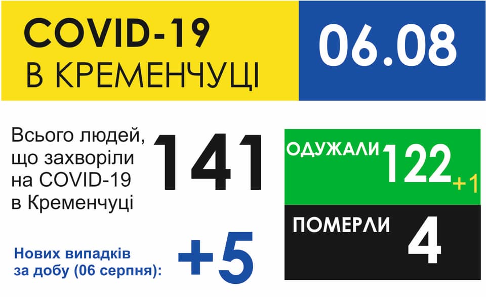 6 серпня в Кременчуці зареєстрували п‘ять нових випадків коронавірусноі хвороби, повідомив міський голова Віталій Малецький.