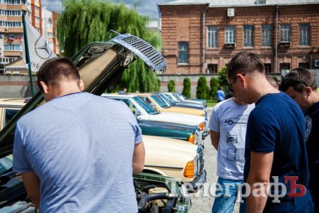 15 серпня о 12.00 полоща Перемоги перетворилась на виставку під відкритим небом легендарних німецьких автівок - Mercedes-Benz W123. В одному місці зібралось кілька десятків таких автівок звідусіль. За годину до цього автівки красувались на площі Незалежності.