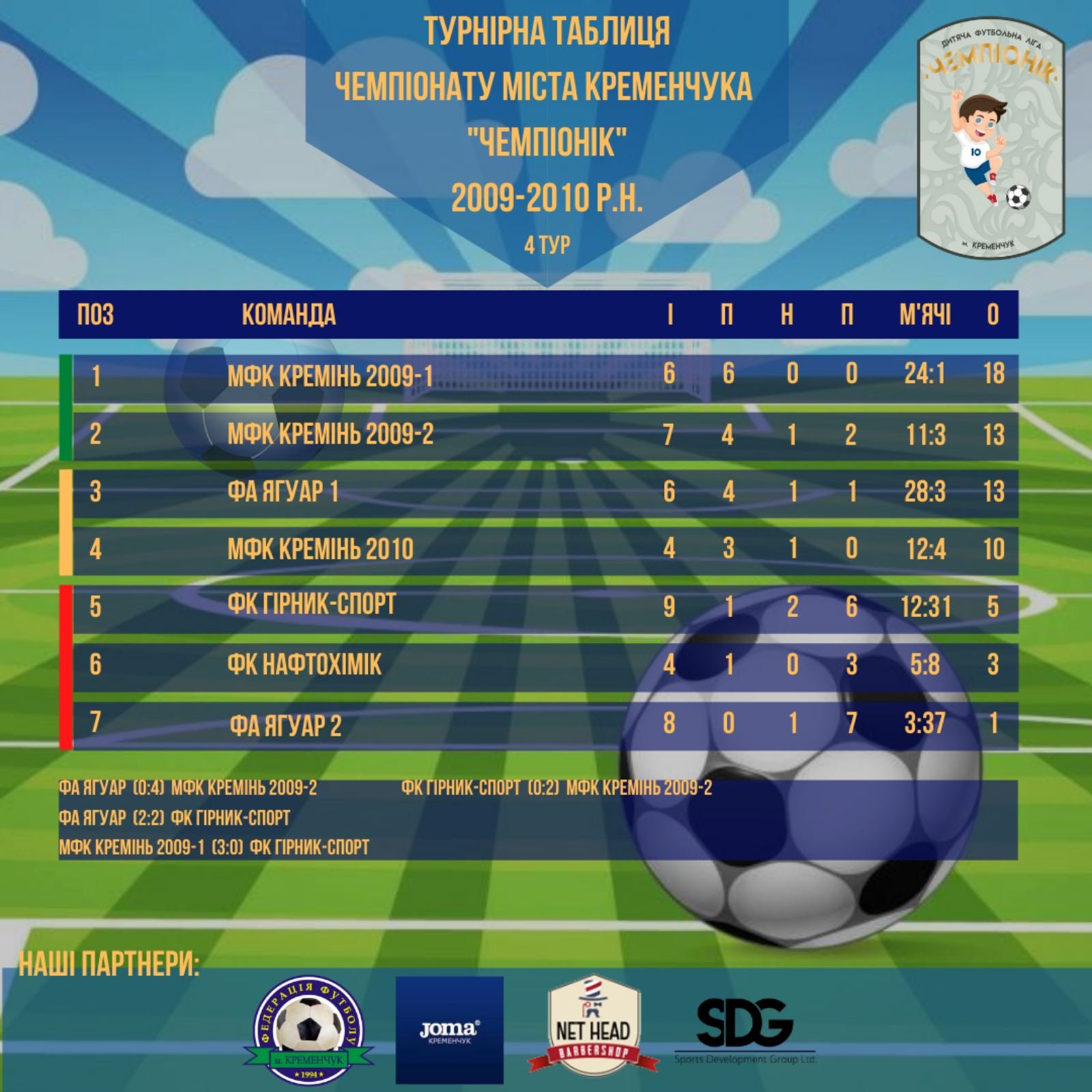У віковій категорії 2009-2010 грають 7 команд. Беззаперечним лідером у групі є команда МФК Кремінь 2009-1.
