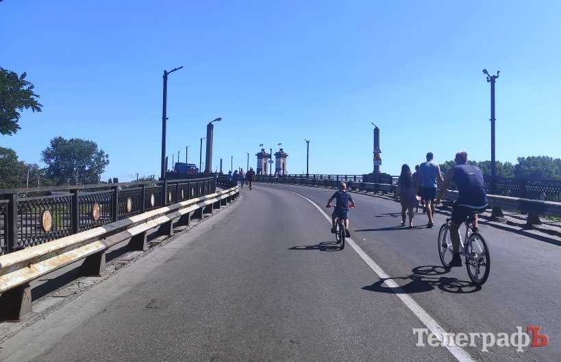 Крім піших прогулянок міст пересікали велосипедисти та мами й татусі з дитячими колясками.