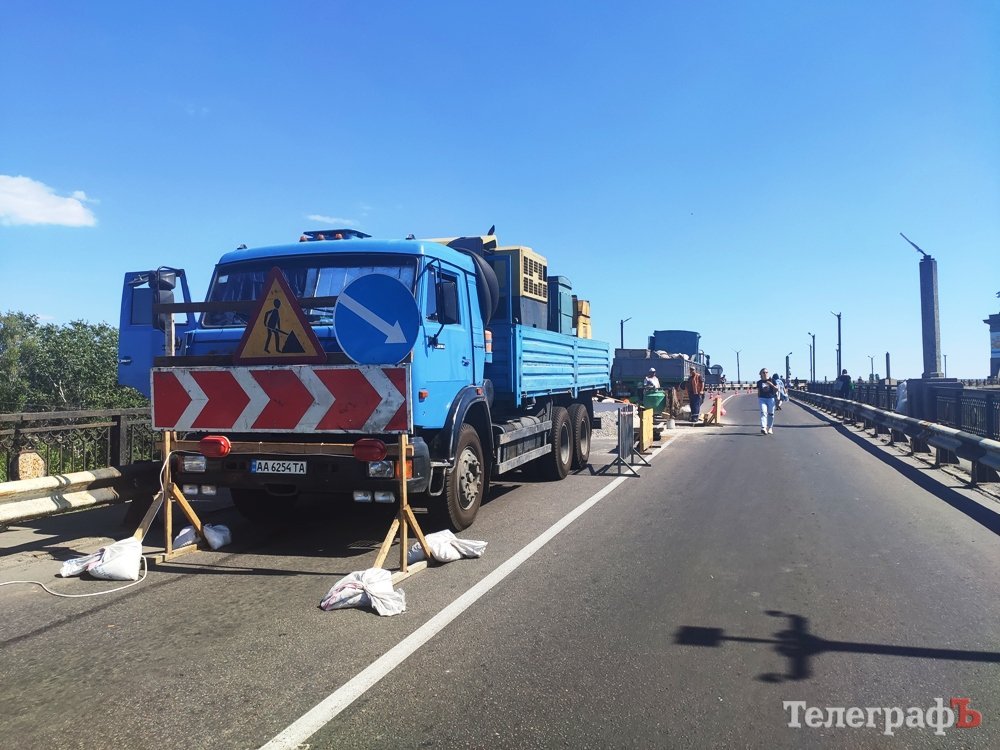 У неділю Крюківський міст повністю перекрили для автівок. Це пов’язано з ремонтом на деформаційних стиках: деякі роботи відомство може виконати лише перекривши міст повністю.