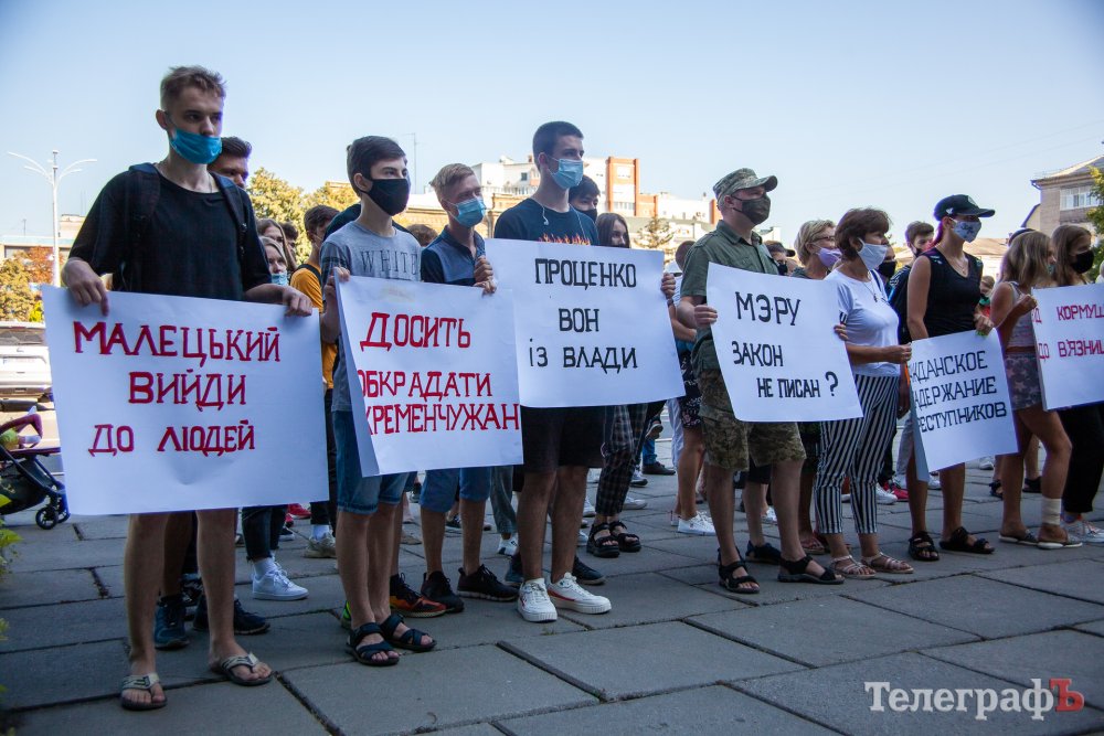 Сьогодні зранку, 17 серпня, під стінами мерії Кременчука відбувся мітинг. Викладачі та спортсмени вимагали, щоб мера, віцемера та керівника управління спорту доставили у прокуратуру на допит, а також прибрали тиск на викладачів КДЮСШ №2. Люди під стінами скандували: «Малецький, Проценко, Мазур выходи!».
