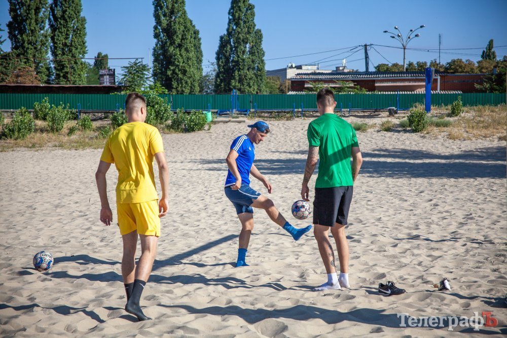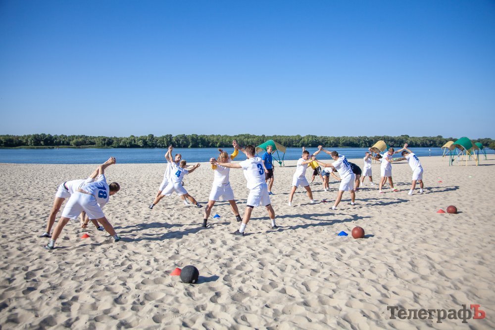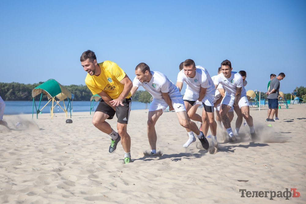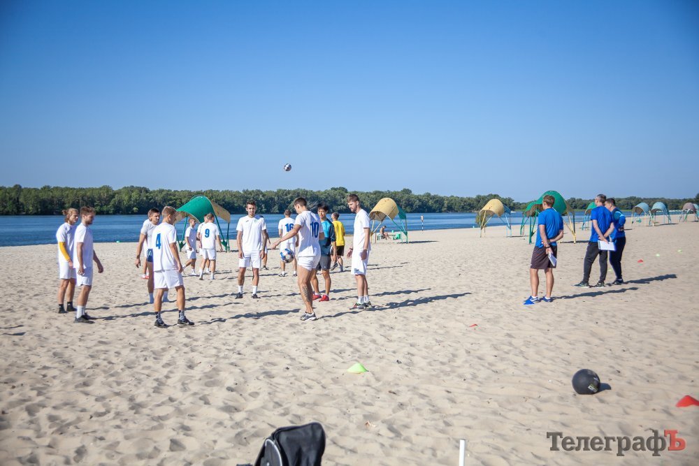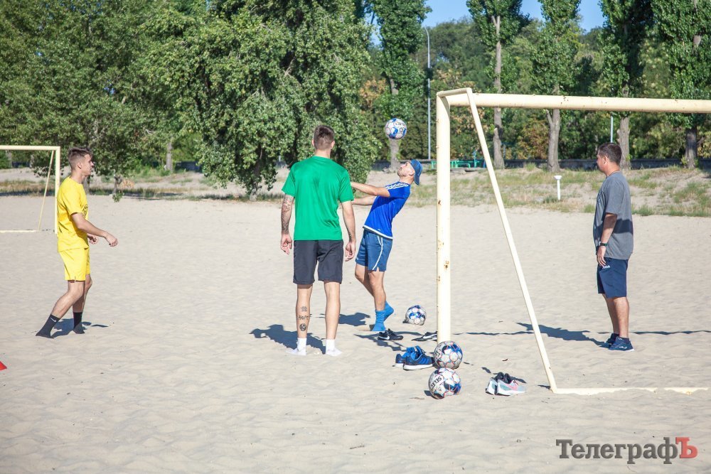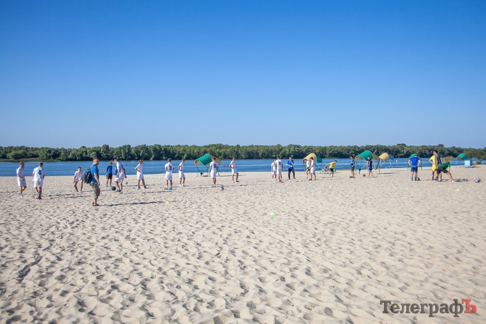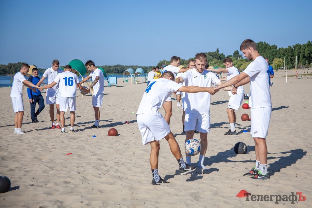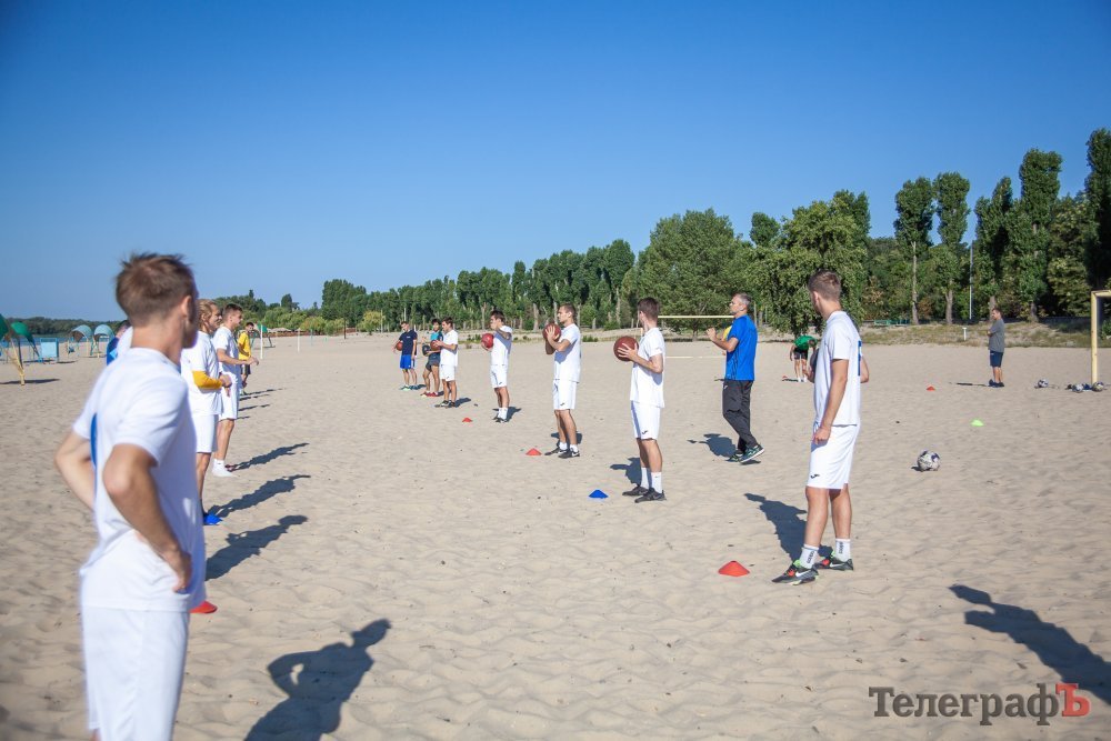 Футболісти «Кременя» сьогодні зранку провели тренування на центральному пляжі Кременчука. Якщо не придивлятися до Крюківського мосту та островів, то можна уявити як кременчуцька команда проводить збір десь на узбережжі Чорного моря.