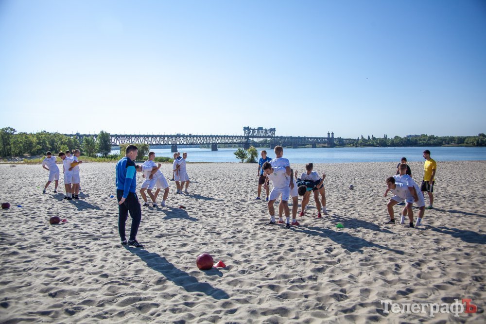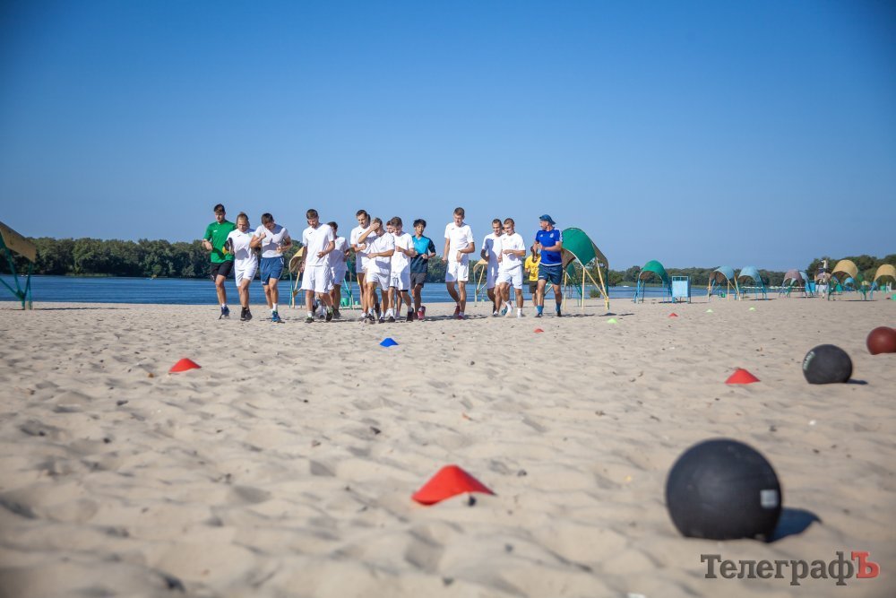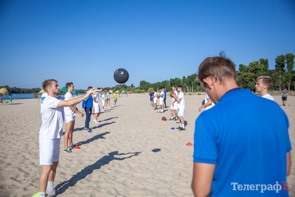 Команда пробіглася узбережжям Дніпра та провела легку розминку. «Синьо-білі» виконували різноманітні естафети та вправи, які мали на меті дати фізичне навантаження на певну групу м’язів.