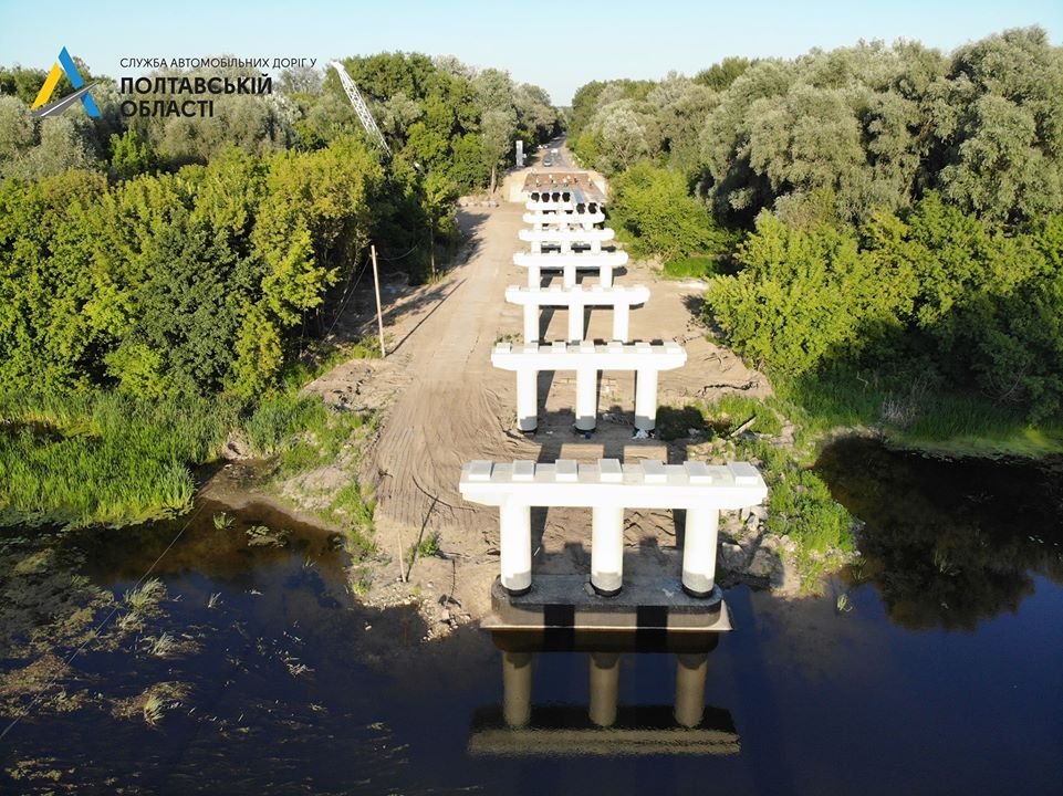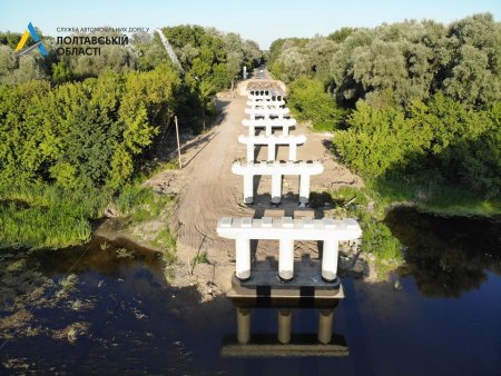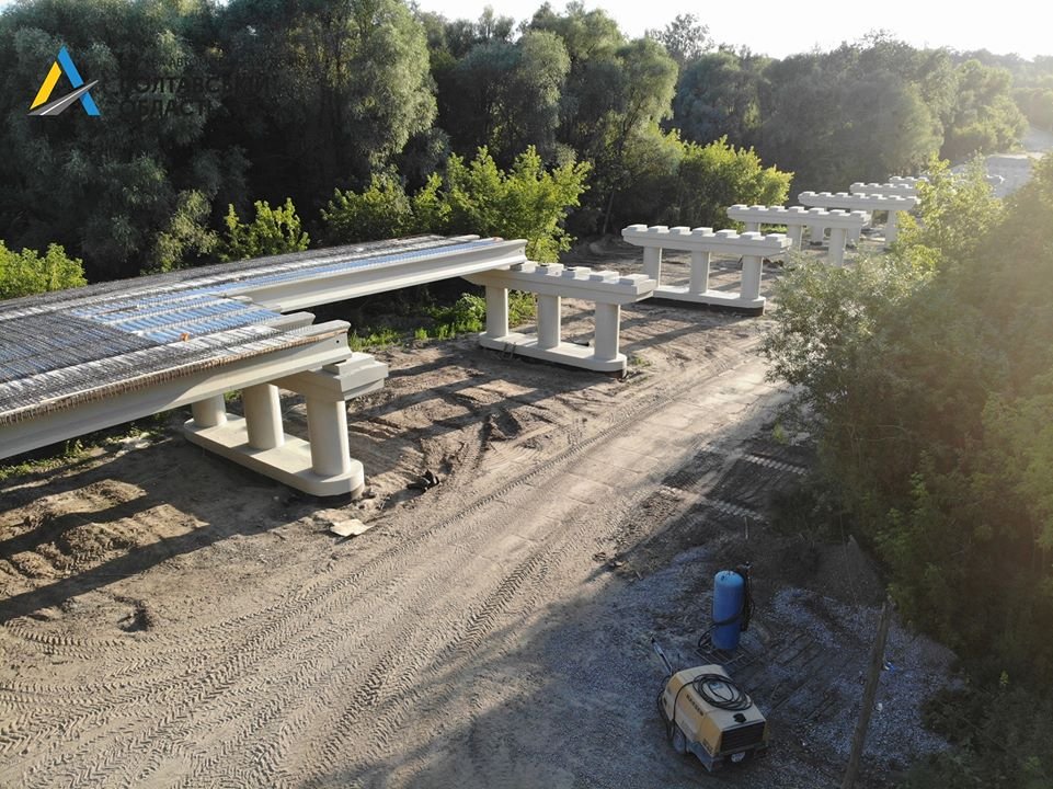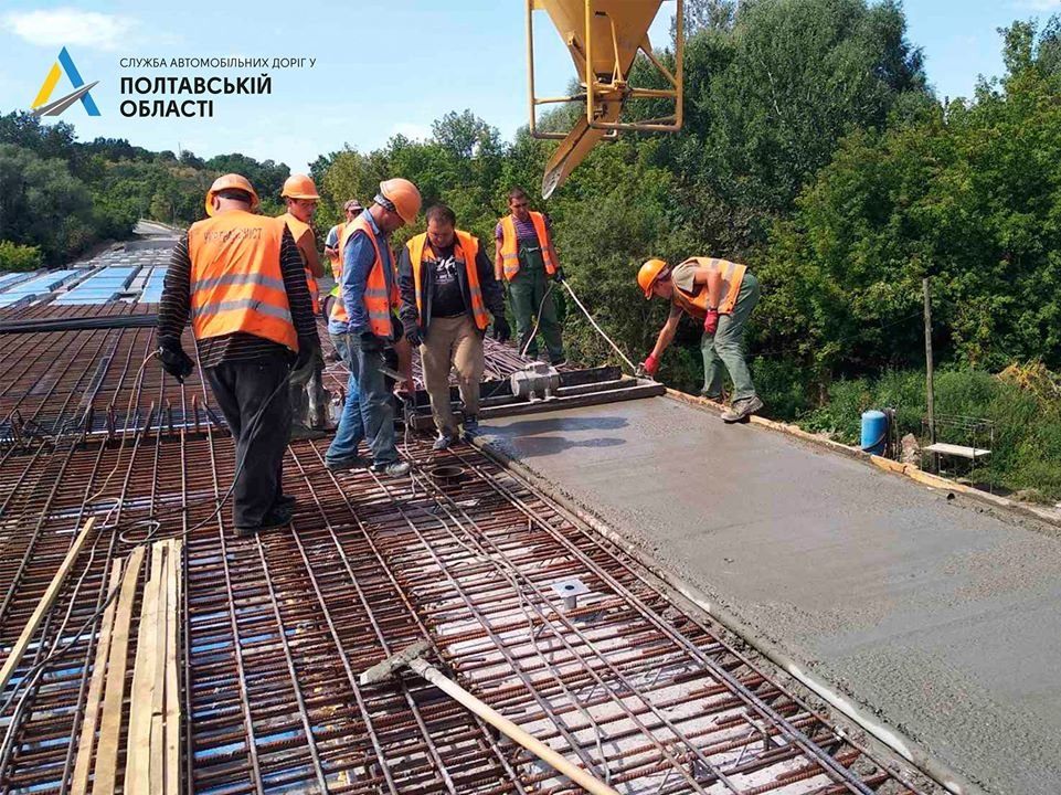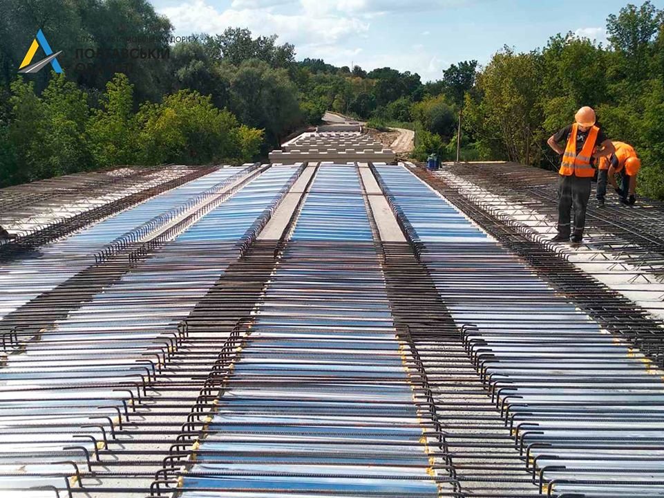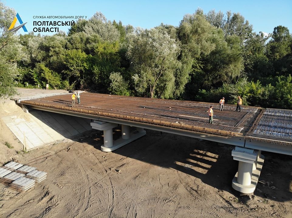 На автомобільній дорозі Т-17-05 Лохвиця - Гадяч триває реконструкція 219-метрового мосту. Підрядна організація проводить влаштування армуючої сітки монолітної плити та монтаж балок. Про це інформує Служба автомобільних доріг у Полтавській області.