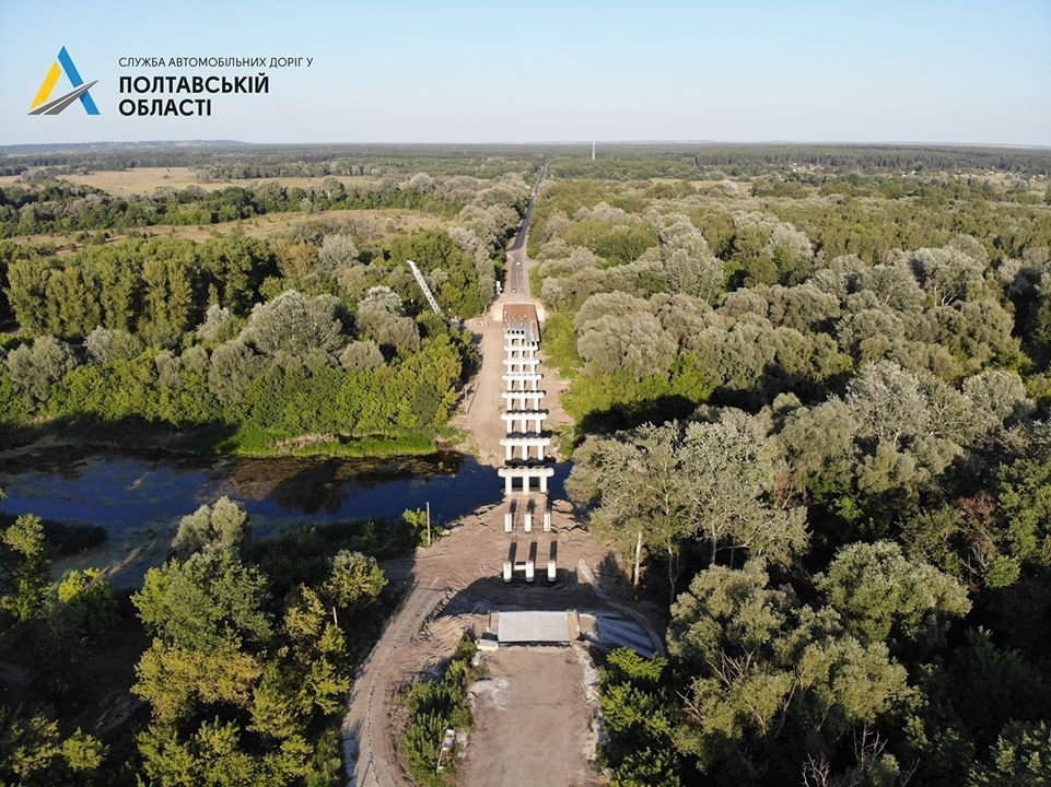 На автомобільній дорозі Т-17-05 Лохвиця – Гадяч триває реконструкція 219-метрового мосту. Підрядна організація проводить влаштування армуючої сітки монолітної плити та монтаж балок. Про це інформує Служба автомобільних доріг у Полтавській області.