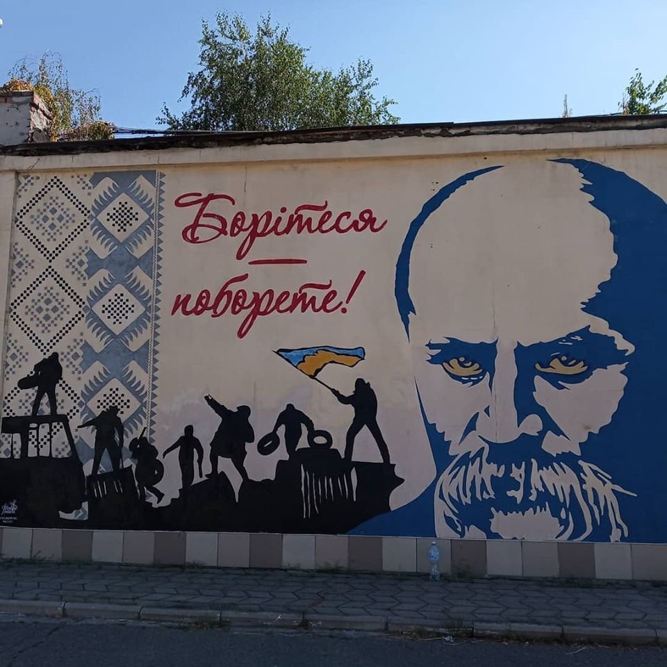 На День Незалежності кременчуцький художник Сергій Брильов відновив графіті Шевченка, яке нещодавно спаплюжила жінка.