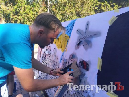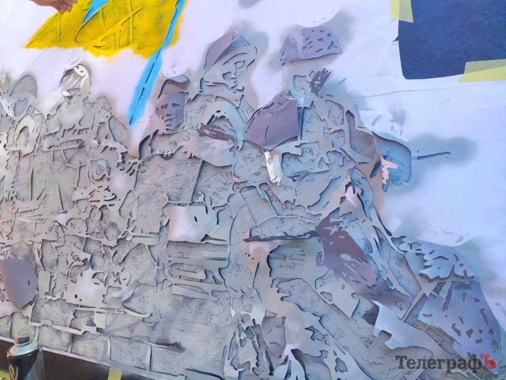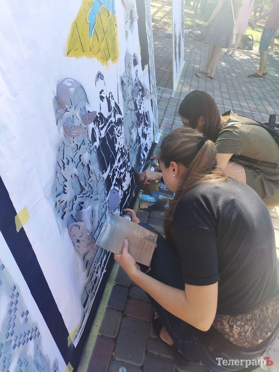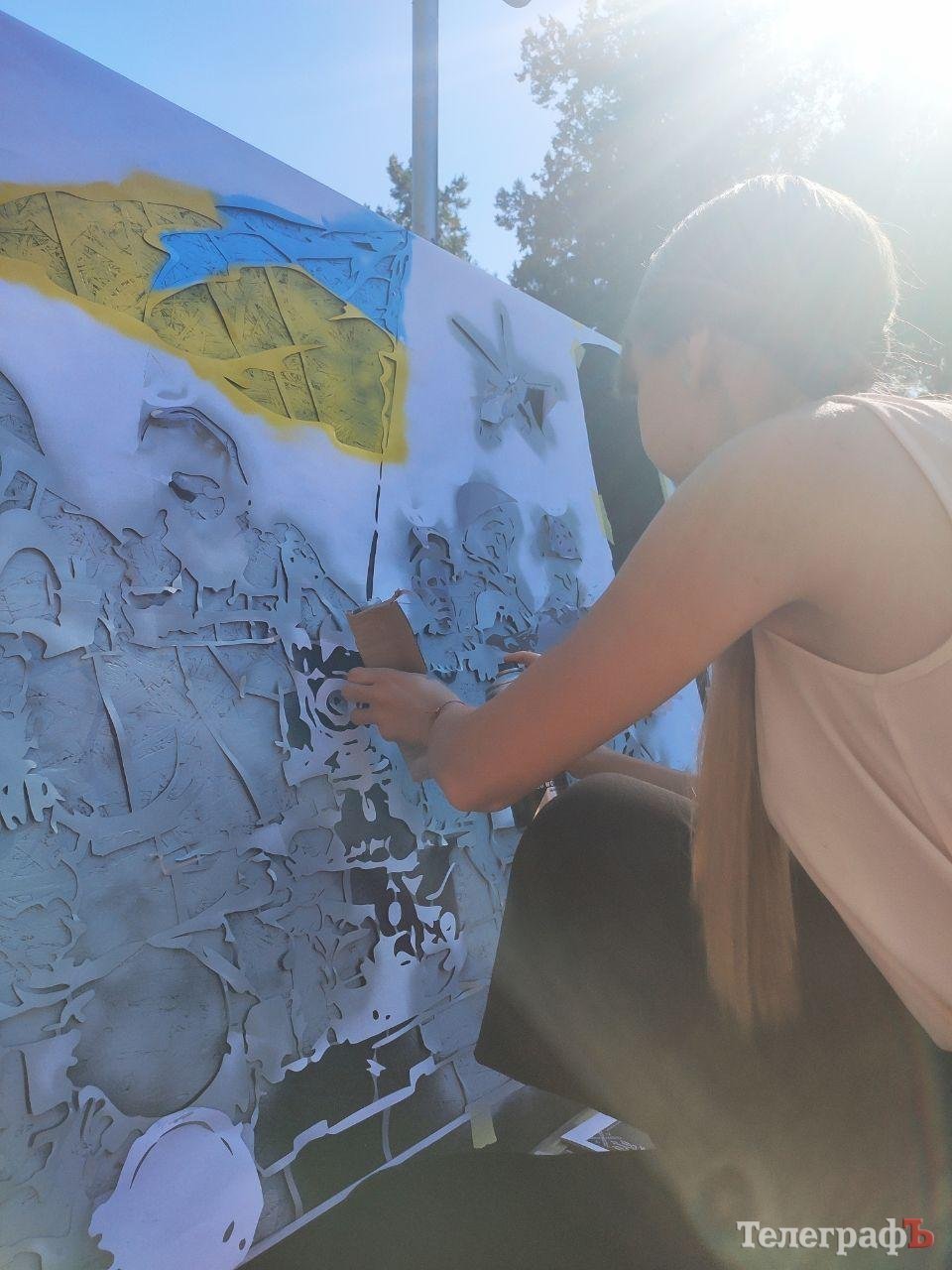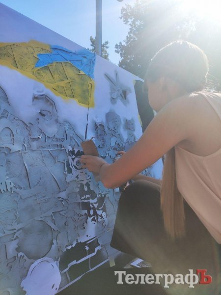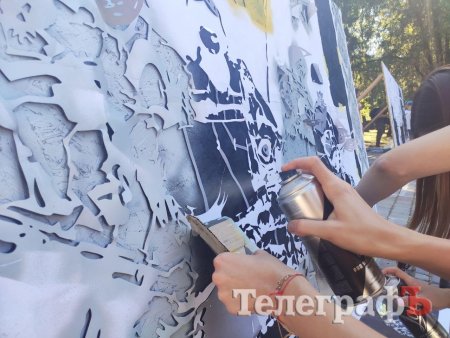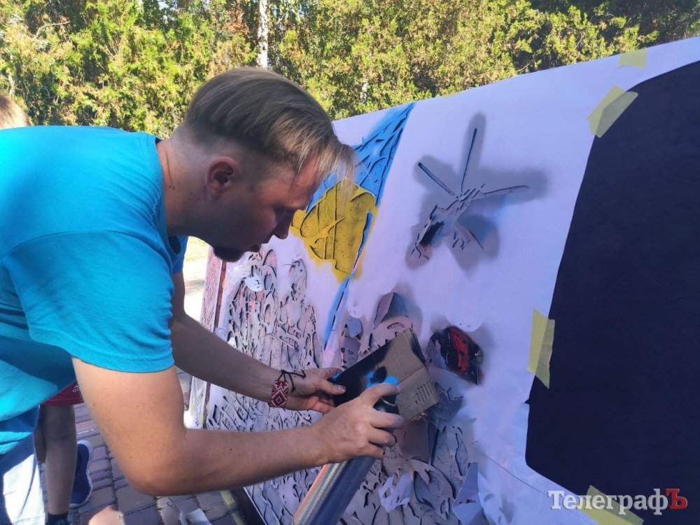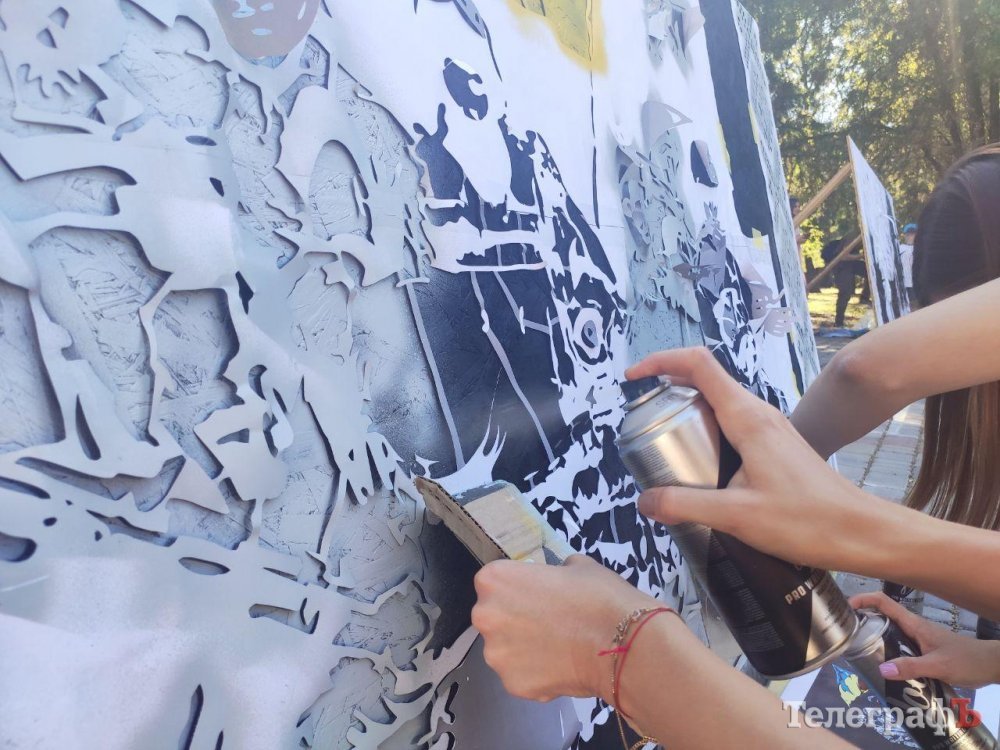Всі охочі могли змогу долучитися до створення графіті: нанесити фарбу з балончиків крізь трафарети.