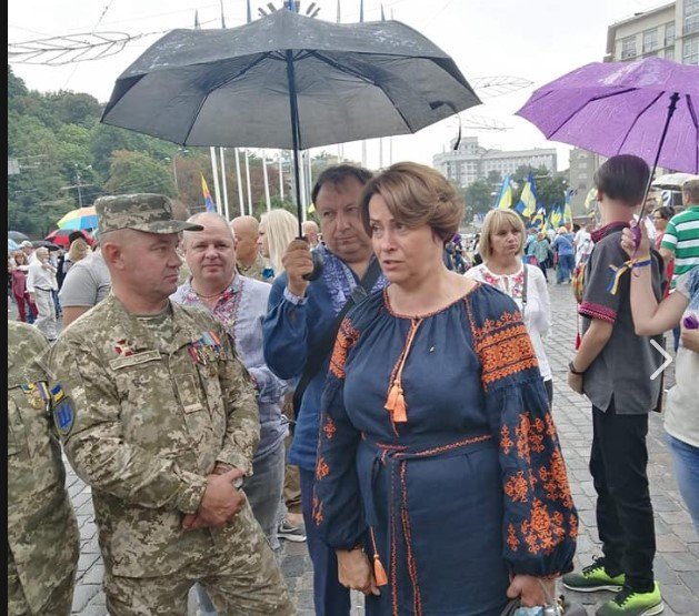 Зліва направо: Олександр Щербина з Ніною Южаніною 24 серпня, на День Незалежності, у Києві. Парасольку над ними тримає Микола Княжицький