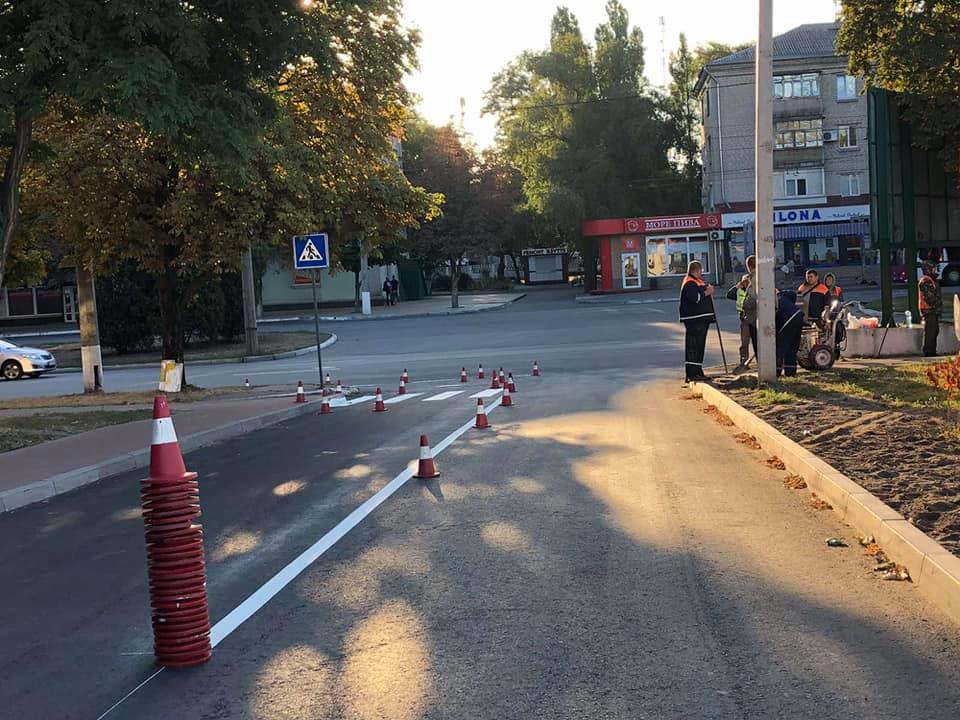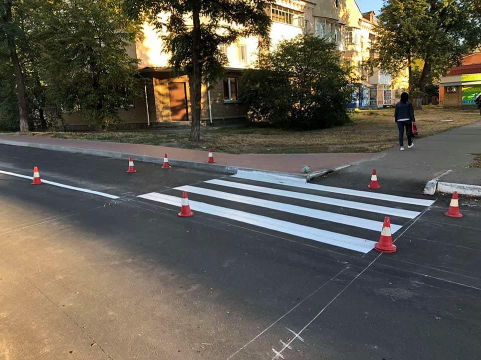 На пішохідній зоні уклали нову тротуарну плитку. Наразі бригада КП «КПС ШРБУ» наносить дорожню розмітку, що сприятиме безпеці дорожнього руху автотранспорту та пішоходів.