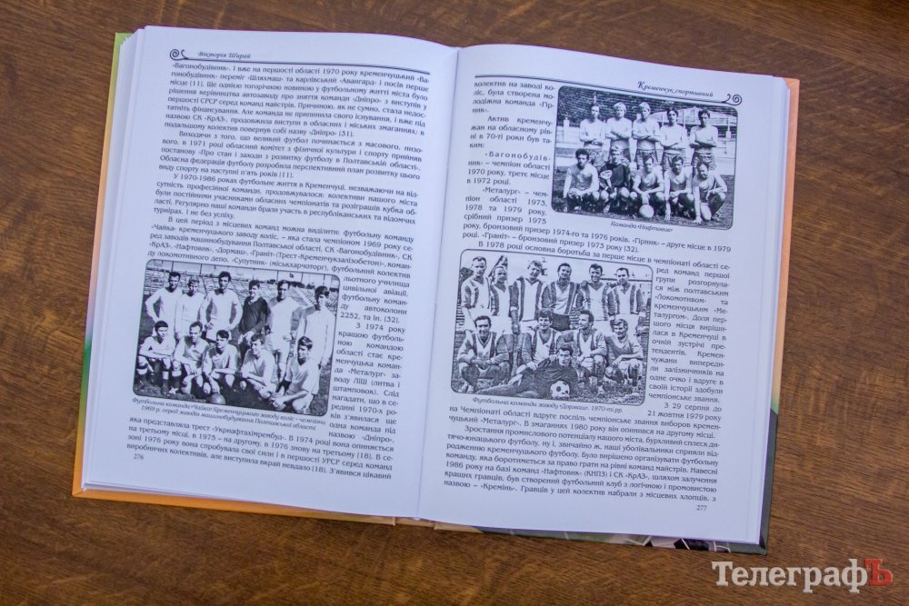 Ініціатором видання монографії про спортивне життя Кременчука був голова Кременчуцької міської організації роботодавців Анатолій Литвиненко. Він пригадав, що в перші післявоєнні роки у вщент зруйнованому місті в приміщенні польського костелу працював спортивно-культурний осередок, вдень там проходили спортивні заняття, а увечері – транслювалися кінострічки.