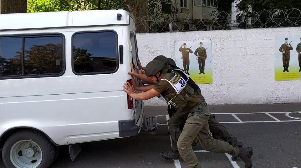 В результаті запеклої боротьби під час подолання дистанції з гирями, згинання-розгинання рук в упорі лежачи, перенесення пораненого, жиму штанги лежачи, перекидання гумової покришки, швидкісного бігу та штовхання автомобіля кращий результат показала команда управління військової частини. Друге місце виборола команда І патрульної роти, третє місце зайняла збірна команда ВБМЗ, КГ, КВ, ПВА.