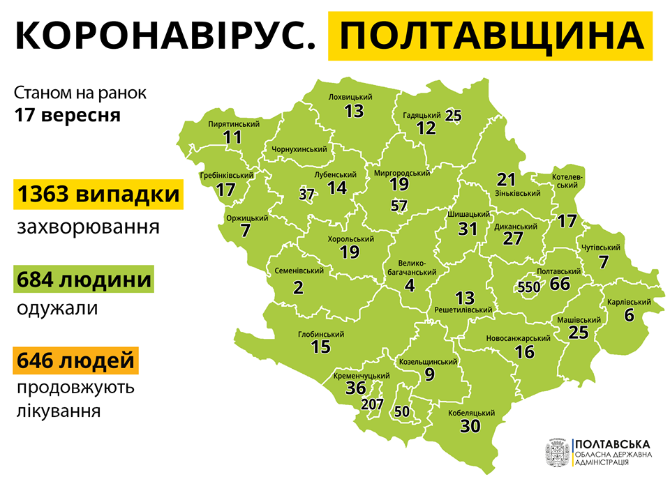 Наразі одужали 684 жителі Полтавщини, продовжують лікування 646 людей.