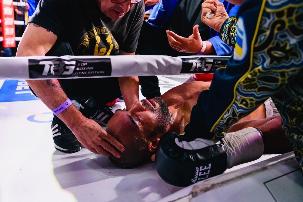 Наш спортсмен не зупинявся й впевнено почувався на ринзі. Наприкінці другого раунд Віктор провів серію хороших ударів, проте іспанець підчепив українця за ногу й той поступився і впав.