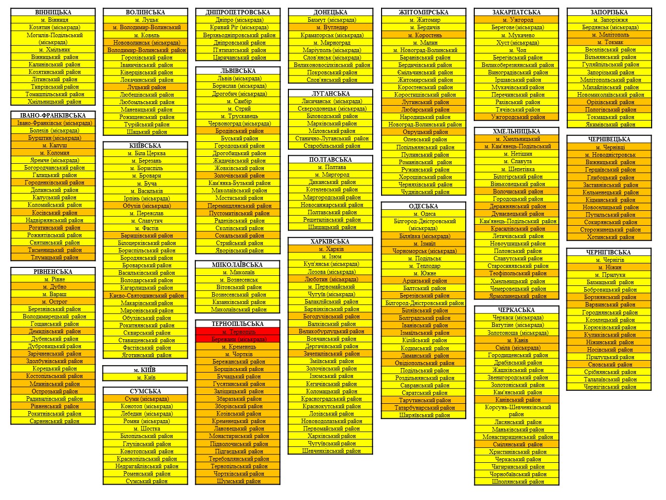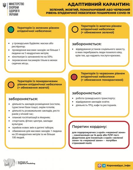 На інфографіці – розподіл на зони адаптивного карантину по Україні